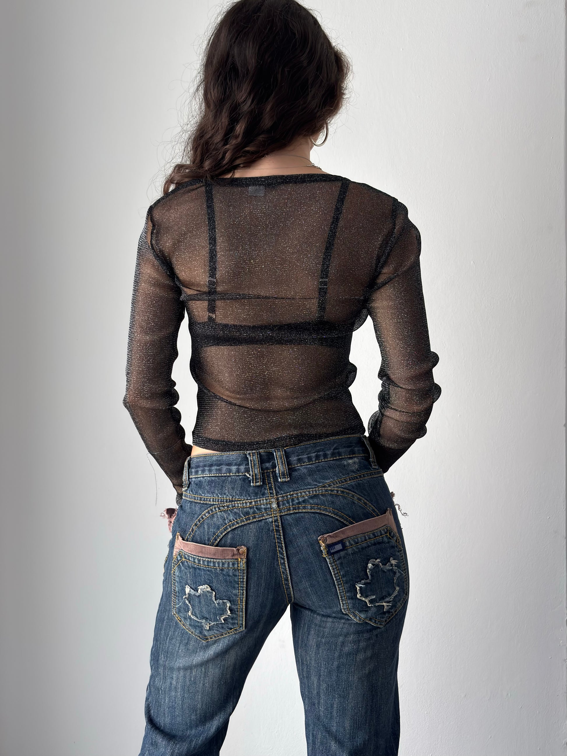 Black long sleeve mesh top