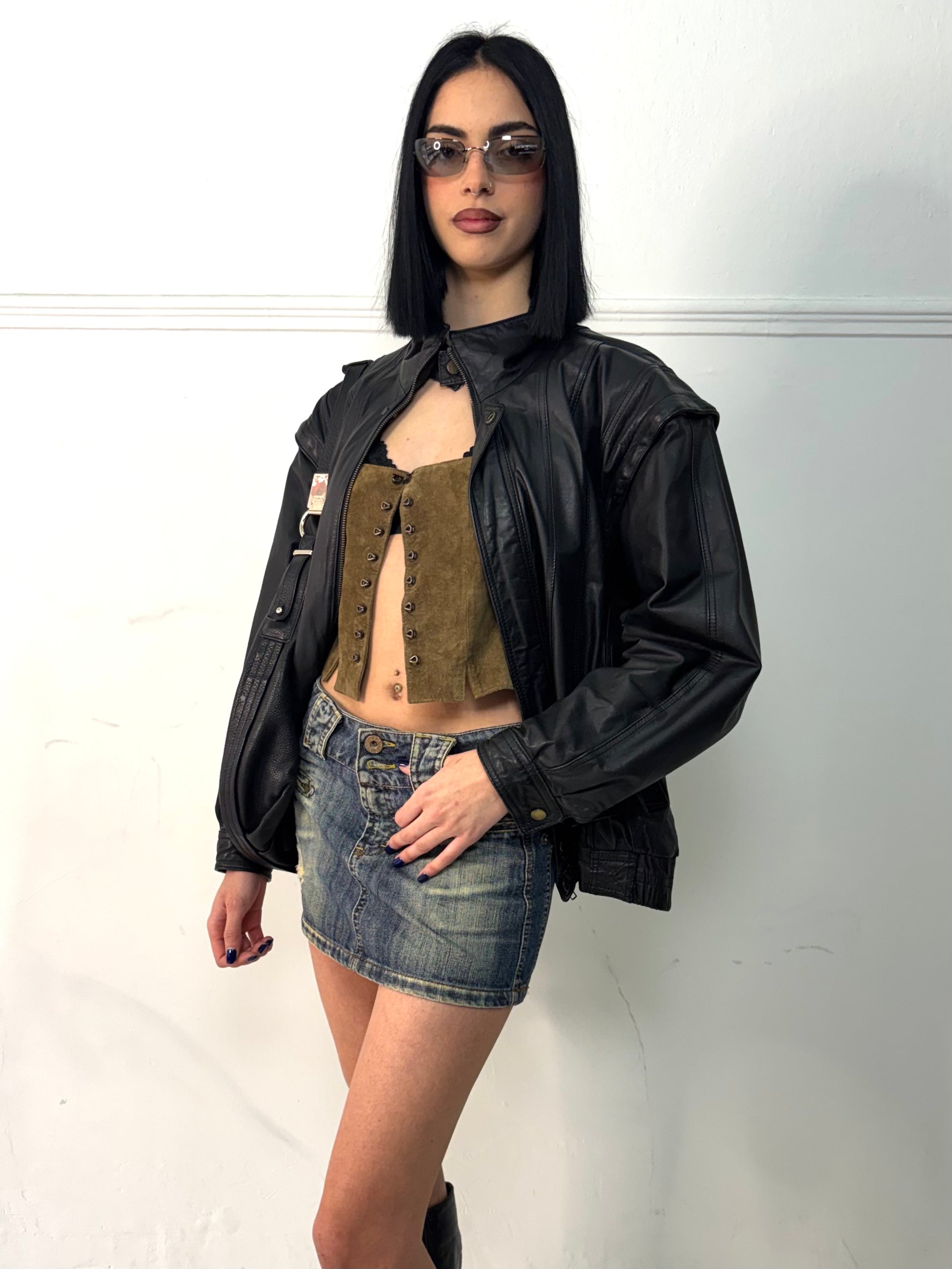 Suede top with corset style tie in the front