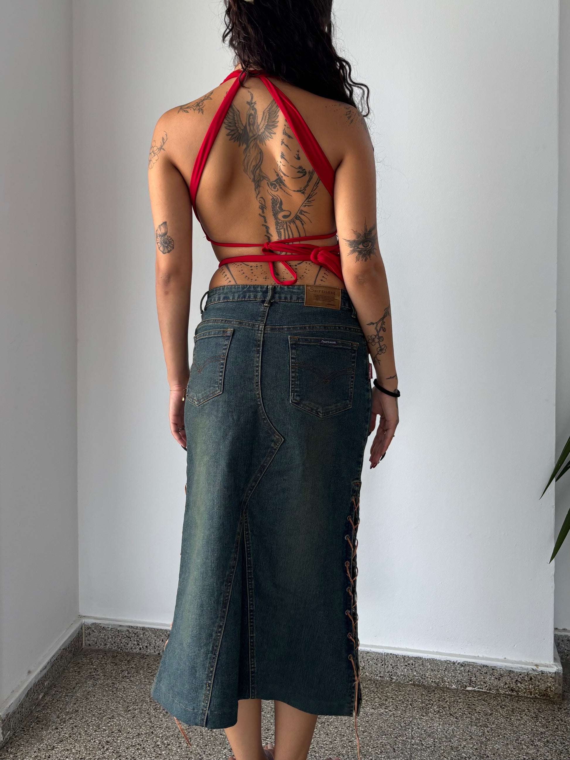 Maxi denim skirt with ties (the ties are a bit old but still work)